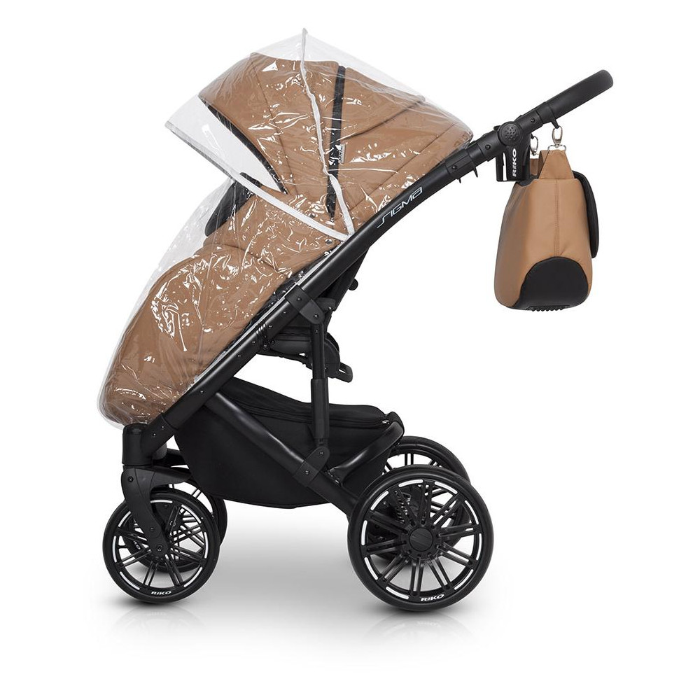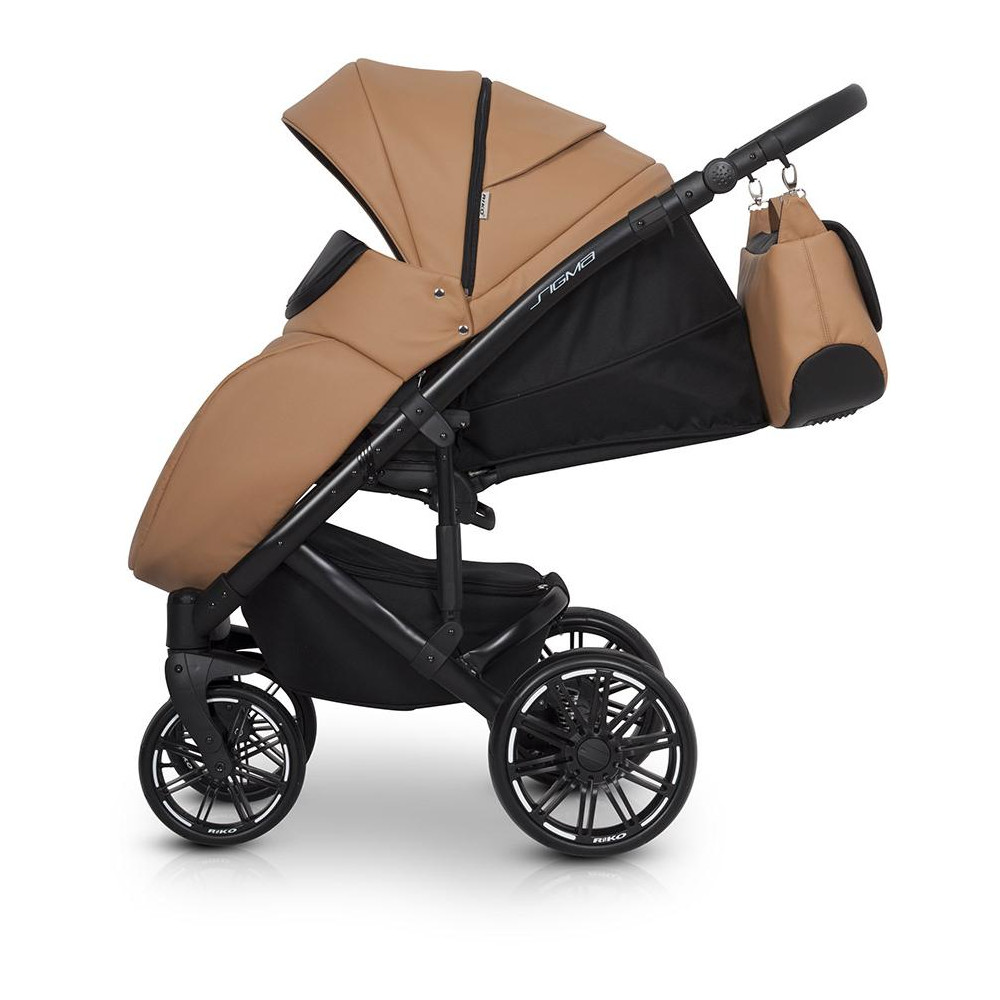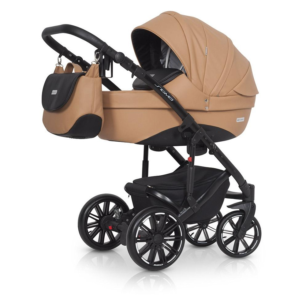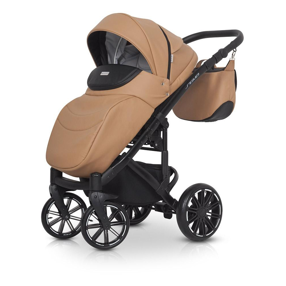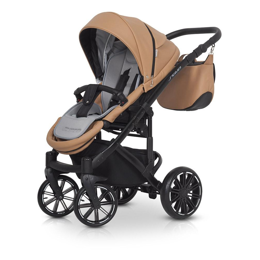 Wózek dziecięcy Riko Sigma Caramel Wózek SIGMA marki RIKO został zaprojektowany w oparciu o Państwa sugestie. Model ten wyróżnia się nowym typem siedziska spacerowego, które posiada dużo wyższe oparcie niż nasze starsze modele i jest niżej osadzone, co ułatwia dziecku dostęp. Dodatkowo SIGMA posiada praktyczny stopnień, dzięki któremu Twojemu dziecku będzie łatwiej wsiadać do wózka, gdy będzie już nieco starsze. Siedzisko posiada nowoczesny i wygodny wytłaczany materacyk wykonany z przyjaznej dla skóry dzianiny. Na szczególna uwagę zasługują również nowej generacji koła bezdętkowe z oponami wykonanymi z poliuretanu. Zapewniają taką samą amortyzację jak koła pompowane, ale są od nich dużo lżejsze, odporniejsze na ścieranie i różnice temperatur, a brak dętki sprawia, że są praktycznie niezniszczalne. Nasze nowe koła zostały wyprodukowane na nasze zlecenie przez producenta z branży Automotive. Charakterystyka nowoczesny wózek wielofunkcyjny z możliwością montażu fotelika samochodowego grupy 0+ Kite ISOFIX Ready, lekki aluminiowy stelaż, duża wygodna gondola z materacykiem i regulacją oparcia, zewnętrzna regulacja oparcia w gondoli, siedzisko w wersji spacerowej z możliwością montażu przodem i tyłem do kierunku jazdy, regulacja podnóżka, 4-stopniowa regulacja oparcia siedziska łącznie z pozycją leżącą, dodatkowy materacyk na siedzisku wykonany z miękkiej dzianiny, wielostopniowa regulacja budki siedziska wraz z dodatkową sekcją pozwalającą pochylić budkę do przodu, pokrowiec na nóżki dziecka, 5-punktowe pasy bezpieczeństwa, dodatkowy pas krokowy mocowany do barierki bezpieczeństwa, barierka bezpieczeństwa z możliwością odchylenia na bok, podnóżek i barierka obszyte praktyczną skórą ekologiczną, prowadnica wózka obszyta praktyczną skórą ekologiczną, regulacja wysokości prowadnicy, duży kosz na zakupy z praktycznym przykryciem, łatwy dostęp do kosza na zakupy, duża praktyczna torba mocowana na prowadnicy wózka, pokrowiec przeciwdeszczowy pasujący zarówno do gondoli jak i do siedziska, moskitiera do gondoli, przewijak, uchwyt na butelkę, dodatkowa amortyzacja gondoli i siedziska z regulacją twardości, innowacyjne łożyskowane koła z oponami z poliuretanu, system amortyzacji przednich koł ASS (Anti Shock System), system regulacji twardości zawieszenia HDA (Heavy Duty Absorption), system szybkiego demontażu przednich kół QRS (Quick Release System), przednie koła samonastawne z możliwością blokady do jazdy prosto, centralny hamulec postojowy. Dane techniczne Rozłożony stelaż z kołami: 103 x 61 x 105 cm Złożony stelaż z kołami: 83 x 61 x 40 cm Zakres regulacji rączki (od ziemi): 72-115 cm Wewnętrzny wymiar gondoli: 22 x 80 x 37 cm Szerokość siedziska: 31 cm Wysokość oparcia: 49 cm Głębokość siedziska: 25 cm Długość podnóżka: 23 cm Średnica kół (tył/przód): 24 / 29 cm Waga stelaż z kołami: 10,00 kg Gondola: 5,40 kg Siedzisko: 6,70 kg Fotelik samochodowy: 4,00 kg