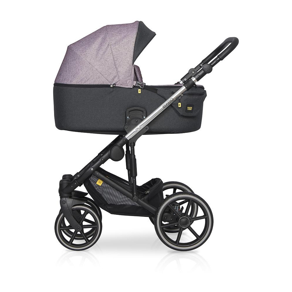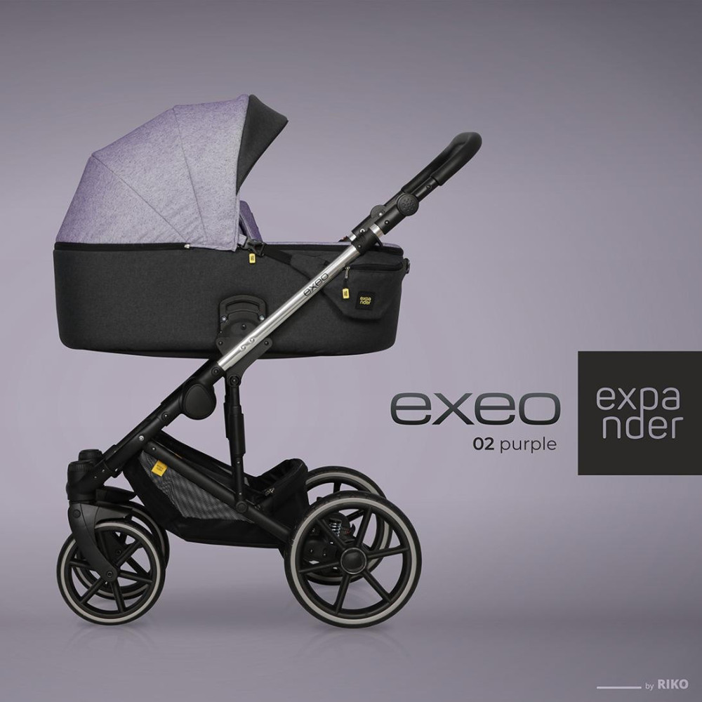 Wózek dziecięcy Expander Exeo Purple Charakterystyka dodatkowa amortyzacja gondoli i siedziska zapewniająca maksymalny komfort, nowoczesny wózek wielofunkcyjny z możliwością montażu fotelika samochodowego grupy 0+ Kite ISOFIX Ready, lekki aluminiowy stelaż, duża wygodna gondola z bawełnianą wyściółką, materacykiem i regulacją oparcia, zewnętrzna regulacja oparcia w gondoli, siedzisko w wersji spacerowej z możliwością montażu przodem i tyłem do kierunku jazdy, regulacja podnóżka, stopniowa regulacja oparcia siedziska łącznie z pozycją leżącą, dodatkowy materacyk na siedzisku wykonany z miękkiej dzianiny, wielostopniowa regulacja budki siedziska, pokrowiec na nóżki dziecka, 5-punktowe pasy bezpieczeństwa, dodatkowy pas krokowy mocowany do barierki bezpieczeństwa, barierka bezpieczeństwa z możliwością odchylenia na bok, barierka obszyta praktyczną skórą ekologiczną, prowadnica wózka obszyta praktyczną skórą ekologiczną, regulacja wysokości prowadnicy, kosz na zakupy, łatwy dostęp do kosza na zakupy, duża praktyczna torba mocowana na prowadnicy wózka, pokrowiec przeciwdeszczowy pasujący zarówno do gondoli jak i do siedziska, moskitiera do gondoli, przewijak, innowacyjne łożyskowane koła z oponami z poliuretanu, system amortyzacji przednich kół ASS (Anti Shock System), system regulacji twardości zawieszenia HDA (Heavy Duty Absorption), system szybkiego demontażu przednich kół QRS (Quick Release System), przednie koła samonastawne z możliwością blokady do jazdy prosto, centralny hamulec postojowy DANE TECHNICZNE: WYMIARY [cm] Rozłożony stelaż z kołami: 58 x 95 x 103 Złożony stelaż z kołami: 58 x 76 x 39 Zakres regulacji rączki: 69-110 Wysokośc rączki w pozycji wyprostowanej: 103 WAGA [kg] Stelaż z kołami: 8.5 Gondola: 4.4 Siedzisko: 4.7 WYMIARY [cm] Szerokość siedziska: 33 Wysokość oparcia: 49 Głębokośćsiedziska: 26 Długośćpodnóżka: 23 Średnica kół (przód/tył): 24/29