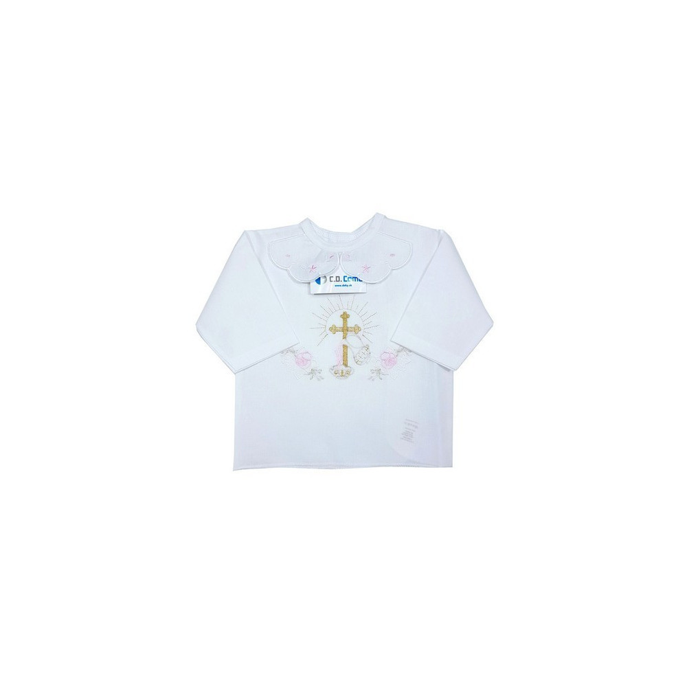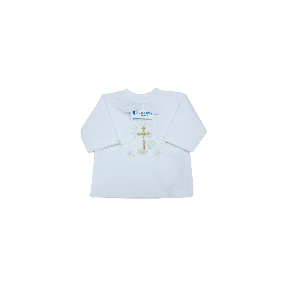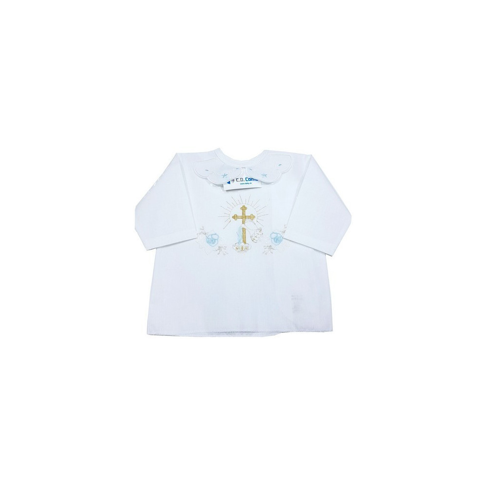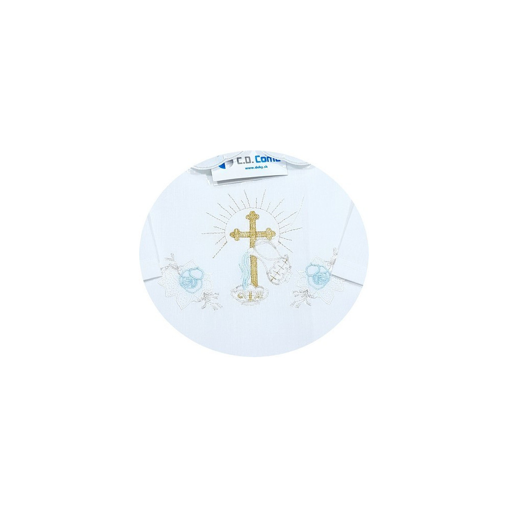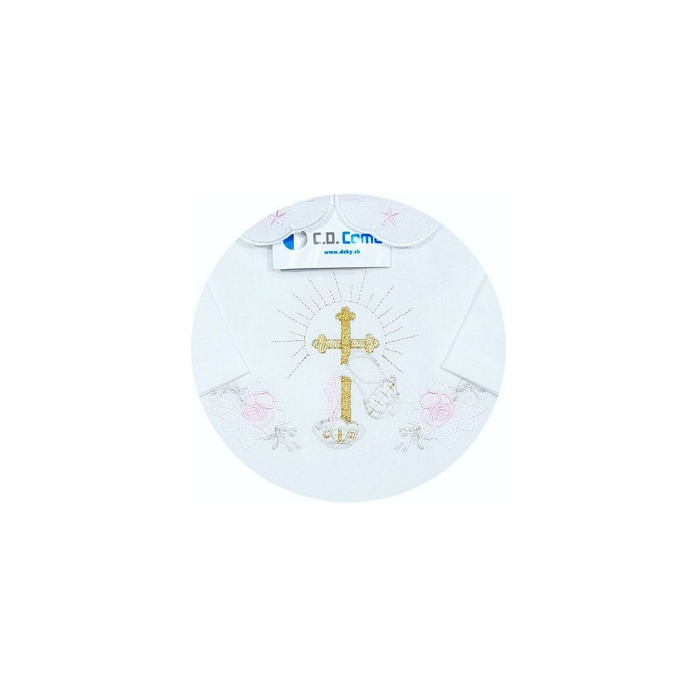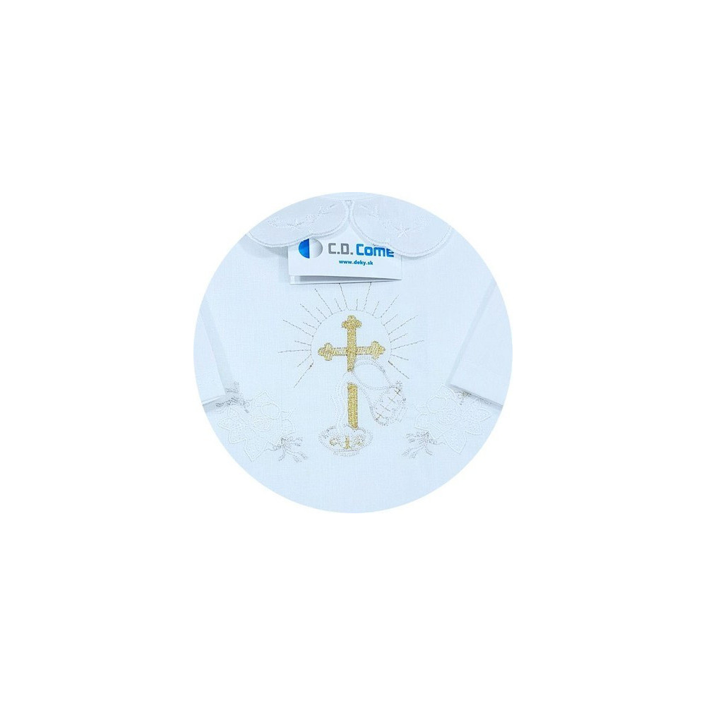 Bavlnená Košieľka s výšivkou určená k obratu krstu. Košieľka je prispôsobená výšivkou, aby bol na nej priestor na vyšitie mena a údajov o krste dieťatka. Košieľka je možné zaslať na objednávku s vyšitým textom ako meno dieťaťa, dátum narodenia a dátum