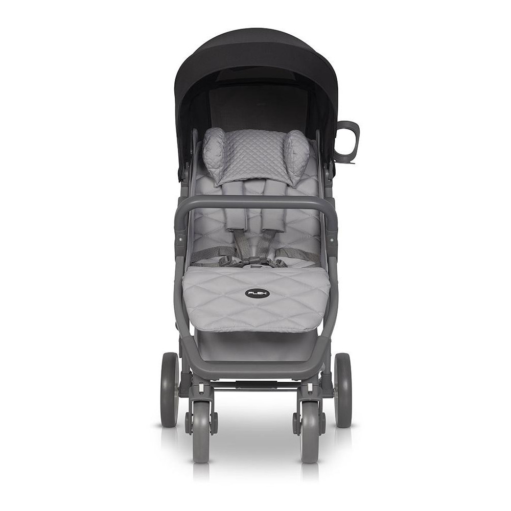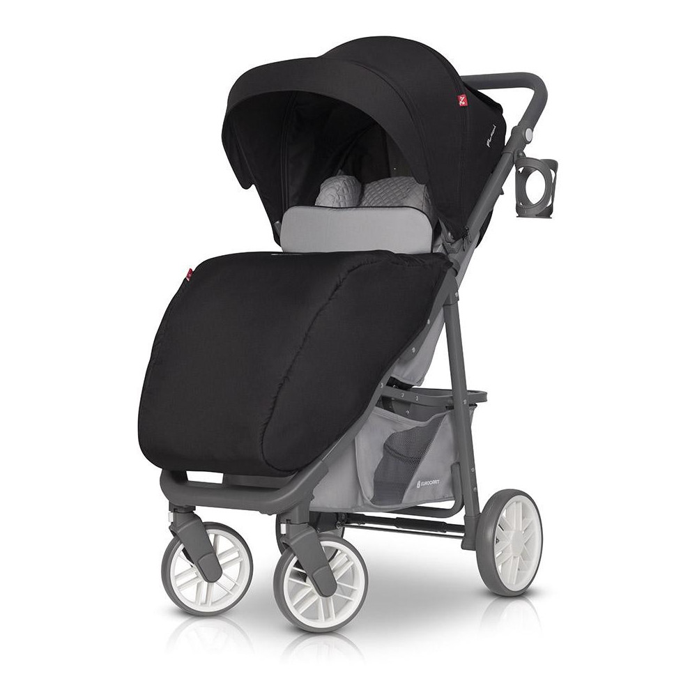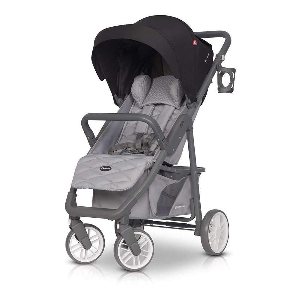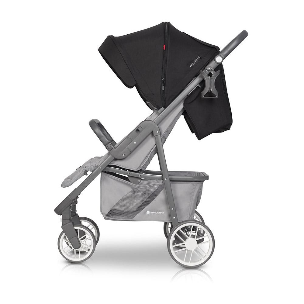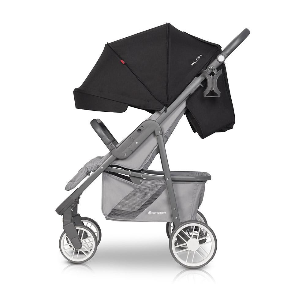 Wózek dziecięcy Euro-Cart Flex Anthracite Wózek spacerowy FLEX marki EURO CART jest „większym bratem” niezwykle popularnego modelu VOLT PRO. FLEX jest jednak wózkiem większym z dużym siedziskiem, które z pewnością wystarczy do końca wózkowania. Maksymalna nośność to aż 26,5 kg! Składa się na nią maksymalna waga dziecka do 22 kg, obciążenie koszyka pod wózkiem do 3 kg oraz opcjonalnej torby zawieszanej na rączce wózka do 1,5 kg. Również koła modelu FLEX są większe niż w przypadku jego „mniejszego brata”. Pod wózkiem znajduje się duży kosz na zakupy z zamykaną suwakiem klapką ułatwiającą dostęp, gdy oparcie znajduje się w pozycji leżącej. Regulacja wysokości rączki sprawia, że FLEX jest wygodny w prowadzeniu zarówno dla wysokich jak i niskich rodziców. Obniżenie rączki będzie również pomocne przy podbijaniu wózka na krawężnik. Najnowsza kolekcja wózka FLEX wzbogacona została o dwa nowe kolory: JUNGLE (odcienie zieleni) oraz PEARL (odcienie szarości). Szary matowy stelaż idealnie komponuje się z szarymi elementami z tworzywa sztucznego, dzięki czemu FLEX idealnie wpasowuje się w najmodniejsze trendy kolorystyczne. Siedzisko wózka spacerowego FLEX certyfikowane jest już dla dzieci od narodzin (siedzisko 0+). Oznacza to, że w wózku można przewozić dzieci, które jeszcze samodzielnie nie siadają. Pamiętajmy jednak, że oparcie powinno być ustawione w pozycji leżącej. Specjalne 5-punktowe pasy bezpieczeństwa posiadają regulację wysokości, dzięki czemu siedzisko będzie wygodne zarówno dla maluszka jak i dla dużego dziecka o wadze do 22 kg. Budka przeciwsłoneczna zawieszona jest wysoko nas oparciem wózka, co sprawia, że FLEX bez problemu pomieści dziecko o wadze do 22 kg. Duża dodatkowa sekcja budki ukryta jest pod suwakiem. Po jej otwarciu możesz pochylić budkę do przodu niemal całkowicie osłaniając dziecko. Nie zapomnieliśmy również o okienku do podglądania dziecka. Regulacja budki posiada wygodny i cichy mechanizm, który zapewnia jej stabilną pozycję (wiatr nie będzie składał budki). W tylnej części wózka znajduje się duży zamykany suwakiem panel wentylacyjny i praktyczna kieszonka na drobiazgi. FLEX w standardzie posiada bardzo bogate wyposażenie. Wraz z wózkiem otrzymujesz przykrycie na nóżki (ocieplacz), pełną folię przeciwdeszczową z wywietrznikami, moskitierę i uchwyt na butelkę. SPECYFIKACJA TECHNICZNA: Dane techniczne - wymiary (cm): Rozłożony z kołami: 87 x 52.5 x 109 Złożony z kołami: 86 x 52.5 x 35 Zakres regulacji rączki (od ziemi): 86 - 110 Wysokość rączki w pozycji wyprostowanej (od ziemi): 106 Szerokość siedziska: 35 Wysokość oparcia: 47 Głębokość siedziska: 21 Długość podnóżka: 18 Średnica kół (przód/tył): 15/21 WAGA (kg): 9,20 SPECYFIKACJA TECHNICZNA: – regulacja wysokości prowadnicy – ultra lekki aluminiowy stelaż – duże łożyskowane koła z amortyzacją, – regulowana wysokość pasów naramiennych – budka przeciwsłoneczna z dodatkową sekcją, wizjerem i daszkiem – prowadnica wózka pokryta antypoślizgowym tworzywem TPR – barierka bezpieczeństwa pokryta antypoślizgowym tworzywem TPR – możliwość złożenia wózka razem z budką i barierką – 3-stopniowa regulacja oparcia wraz z pozycją leżącą – 2-stopniowa regulacja podnóżka – pokrowiec na nóżki – wentylacja w tylnej części budki – pełna folia przeciwdeszczowa z wywietrznikami (zasłania całą tapicerkę wózka) – poduszka pod główkę dziecka – moskitiera – uchwyt na butelkę – system obrotowych kół przednich z możliwością blokady do jazdy prosto – automatyczna blokada złożonego wózka (ułatwia przenoszenie) – okienko w budce – pojemny koszyk na zakupy – praktyczna kieszeń w tylnej części budki – hamulec łączony – wyprodukowany zgodnie z europejską normą bezpieczeństwa EN 1888-1:2018 i EN 1888-2:2018
