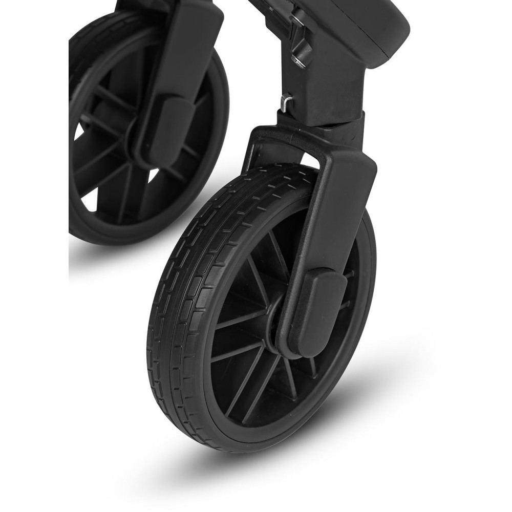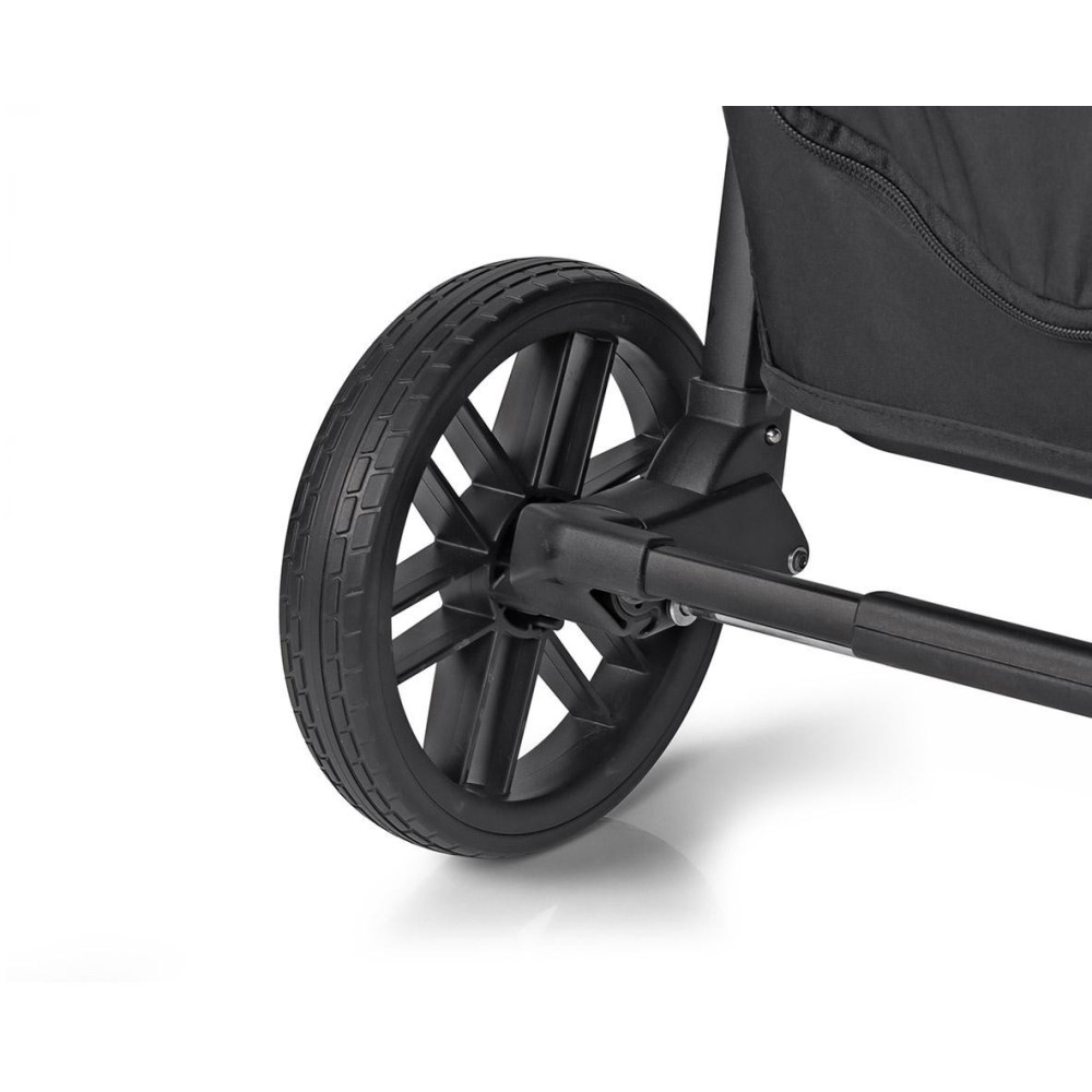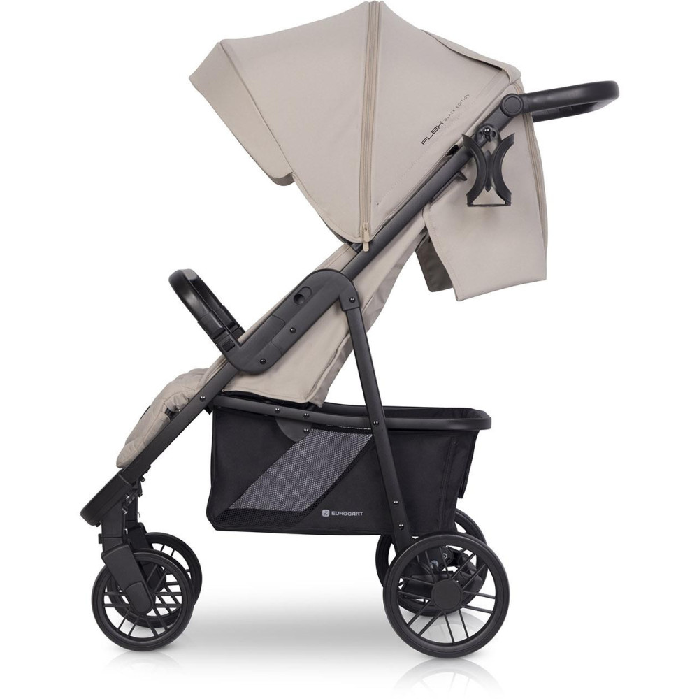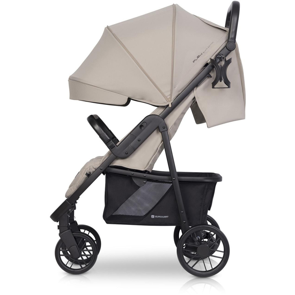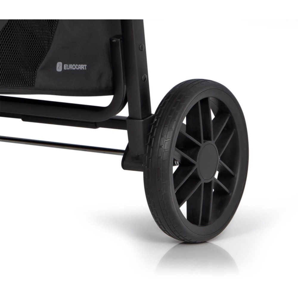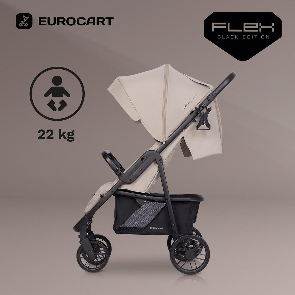 Wózek dziecięcy Euro-Cart Flex Black Edition Wózek spacerowy FLEX marki EURO CART jest „większym bratem” niezwykle popularnego modelu VOLT PRO. FLEX jest jednak wózkiem większym z dużym siedziskiem, które z pewnością wystarczy do końca wózkowania. Maksymalna nośność to aż 26,5 kg! Składa się na nią maksymalna waga dziecka do 22 kg, obciążenie koszyka pod wózkiem do 3 kg oraz opcjonalnej torby zawieszanej na rączce wózka do 1,5 kg. Również koła modelu FLEX są większe niż w przypadku jego „mniejszego brata”. Pod wózkiem znajduje się duży kosz na zakupy z zamykaną suwakiem klapką ułatwiającą dostęp, gdy oparcie znajduje się w pozycji leżącej. Regulacja wysokości rączki sprawia, że FLEX jest wygodny w prowadzeniu zarówno dla wysokich jak i niskich rodziców. Obniżenie rączki będzie również pomocne przy podbijaniu wózka na krawężnik. Najnowsza kolekcja wózka FLEX wzbogacona została o dwa nowe kolory: JUNGLE (odcienie zieleni) oraz PEARL (odcienie szarości). Szary matowy stelaż idealnie komponuje się z szarymi elementami z tworzywa sztucznego, dzięki czemu FLEX idealnie wpasowuje się w najmodniejsze trendy kolorystyczne. Siedzisko wózka spacerowego FLEX certyfikowane jest już dla dzieci od narodzin (siedzisko 0+). Oznacza to, że w wózku można przewozić dzieci, które jeszcze samodzielnie nie siadają. Pamiętajmy jednak, że oparcie powinno być ustawione w pozycji leżącej. Specjalne 5-punktowe pasy bezpieczeństwa posiadają regulację wysokości, dzięki czemu siedzisko będzie wygodne zarówno dla maluszka jak i dla dużego dziecka o wadze do 22 kg. Budka przeciwsłoneczna zawieszona jest wysoko nas oparciem wózka, co sprawia, że FLEX bez problemu pomieści dziecko o wadze do 22 kg. Duża dodatkowa sekcja budki ukryta jest pod suwakiem. Po jej otwarciu możesz pochylić budkę do przodu niemal całkowicie osłaniając dziecko. Nie zapomnieliśmy również o okienku do podglądania dziecka. Regulacja budki posiada wygodny i cichy mechanizm, który zapewnia jej stabilną pozycję (wiatr nie będzie składał budki). W tylnej części wózka znajduje się duży zamykany suwakiem panel wentylacyjny i praktyczna kieszonka na drobiazgi. FLEX w standardzie posiada bardzo bogate wyposażenie. Wraz z wózkiem otrzymujesz przykrycie na nóżki (ocieplacz), pełną folię przeciwdeszczową z wywietrznikami, moskitierę i uchwyt na butelkę. SPECYFIKACJA TECHNICZNA: Dane techniczne - wymiary (cm): Rozłożony z kołami: 87 x 52.5 x 109 Złożony z kołami: 86 x 52.5 x 35 Zakres regulacji rączki (od ziemi): 86 - 110 Wysokość rączki w pozycji wyprostowanej (od ziemi): 106 Szerokość siedziska: 35 Wysokość oparcia: 47 Głębokość siedziska: 21 Długość podnóżka: 18 Średnica kół (przód/tył): 15/21 WAGA (kg): 9,20 SPECYFIKACJA TECHNICZNA: – regulacja wysokości prowadnicy – ultra lekki aluminiowy stelaż – duże łożyskowane koła z amortyzacją, – regulowana wysokość pasów naramiennych – budka przeciwsłoneczna z dodatkową sekcją, wizjerem i daszkiem – prowadnica wózka pokryta antypoślizgowym tworzywem TPR – barierka bezpieczeństwa pokryta antypoślizgowym tworzywem TPR – możliwość złożenia wózka razem z budką i barierką – 3-stopniowa regulacja oparcia wraz z pozycją leżącą – 2-stopniowa regulacja podnóżka – pokrowiec na nóżki – wentylacja w tylnej części budki – pełna folia przeciwdeszczowa z wywietrznikami (zasłania całą tapicerkę wózka) – poduszka pod główkę dziecka – moskitiera – uchwyt na butelkę – system obrotowych kół przednich z możliwością blokady do jazdy prosto – automatyczna blokada złożonego wózka (ułatwia przenoszenie) – okienko w budce – pojemny koszyk na zakupy – praktyczna kieszeń w tylnej części budki – hamulec łączony – wyprodukowany zgodnie z europejską normą bezpieczeństwa EN 1888-1:2018 i EN 1888-2:2018