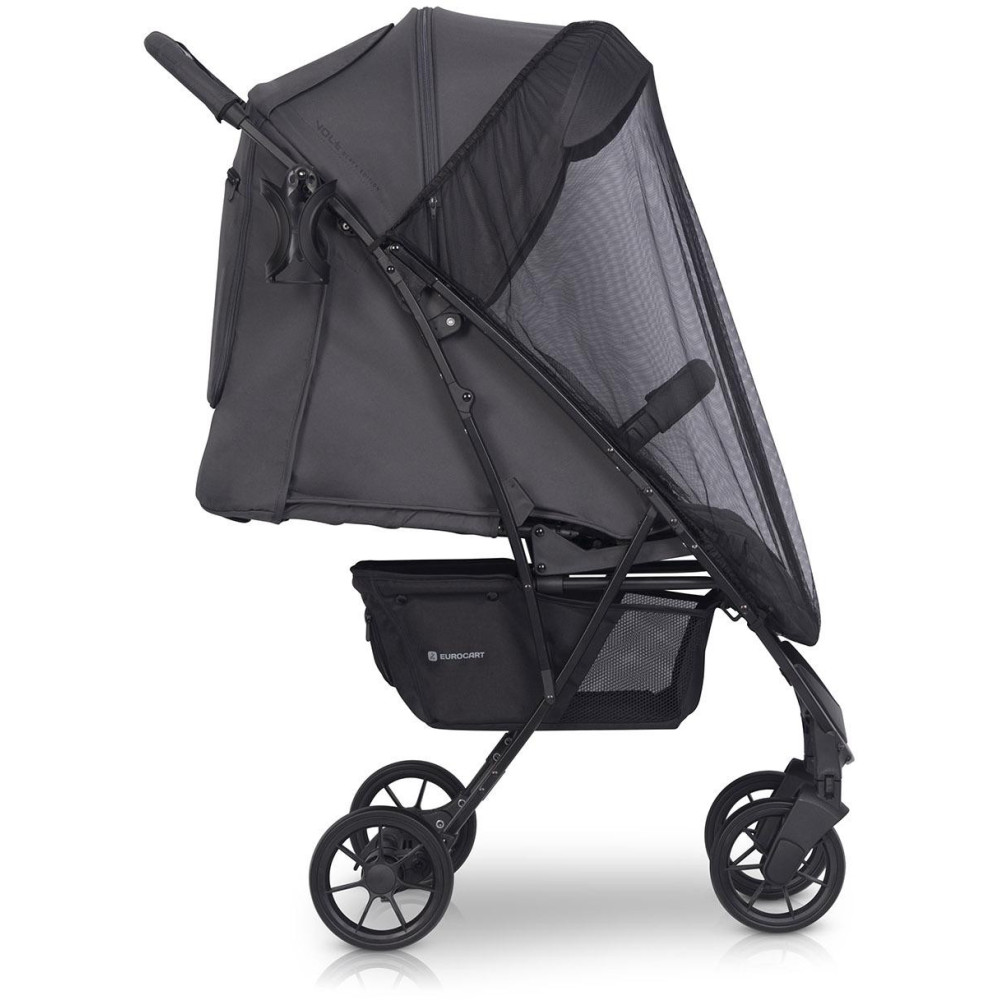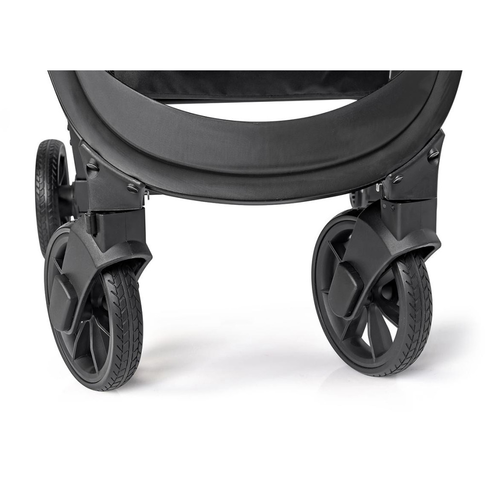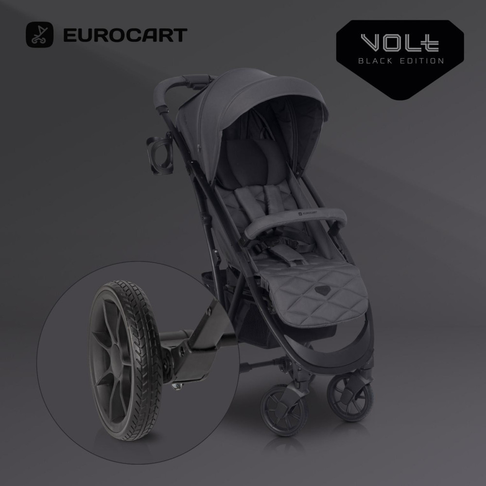 Wózek dziecięcy Euro-Cart Volt Black Edition Przedstawiamy najnowszą wersję niezwykle popularnego wózka spacerowego VOLT PRO marki EURO-CART z kolekcji 2021. Projektanci marki EURO-CART stanęli przed nie lada wyzwaniem. Co można zmienić w produkcie, który bije rekordy popularności od 2018 roku? Postanowiliśmy więc zapytać naszych klientów. Dzięki Państwa opiniom wprowadziliśmy dwa nowe kolory: JUNGLE (odcienie zieleni) oraz PEARL (odcienie szarości). To właśnie te dwa kolory najczęściej proponowani Państwo poprzez media społecznościowe. Nowa kolorystyka to jednak nie wszystko. Najnowszy VOLT PRO posiada nowe koła, które jeszcze lżej się obracają, a ich opony wykonane zostały z mieszanki tworzyw zapewniających większą odporność na ścieranie. Delikatne zmiany w kroju tapicerki objęły koszyk na zakupy oraz tylną kieszonkę z panelem wentylacyjnym. VOLT PRO posiada certyfikat zgodności z normą bezpieczeństwa EN 1888-1:2018 oraz EN 1888-2:2018, co oznacza, że jest wózkiem spacerowym przeznaczonym dla dzieci od narodzin do wagi aż 22 kg. Dodatkowo dopuszczalne jest obciążenie koszyka pod wózkiem do 3 kg, co oznacza, że całkowite maksymalne obciążenie wózka to aż 25 kg. Co sprawia, że VOLT PRO jest jednym z najpopularniejszych wózków spacerowych w Polsce od ponad 3 lat? Sekret tkwi w opatentowanym systemie składania, dzięki któremu wózek jest niezwykle mały po złożeniu, a jednocześnie wysoki i wygodny po rozłożeniu. Dzięki wysoko osadzonej budce wózek pomieści również duże dzieci. Złożony wózek ma kształt kostki, którą możesz z łatwością spakować w dołączony do zestawu pokrowiec transportowy. Zmieści się w większości bagażników samochodowych. Dodatkowym plusem jest system składania obsługiwany jedną ręką. Przy odrobinie wprawy z łatwością złożysz wózek jednocześnie przytrzymując dziecko wolna ręką. Nie bez znaczenia jest również waga. VOLT PRO waży zaledwie 7,6 kg. Bogate wyposażenie wózka VOLT PRO obejmuje przykrycie na nóżki, folię przeciwdeszczową z systemem wentylacji, moskitierę, pokrowiec transportowy, uchwyt na butelkę oraz praktyczny pas naramienny do przenoszenia złożonego wózka. SPECYFIKACJA TECHNICZNA: Dane techniczne - wymiary (cm): Rozłożony z kołami: 85 x 50 x 106 Złożony z kołami: 63 x 50 x 27 Złożony bez kół: 61 x 43 x 27 Szerokość siedziska: 33 Wysokość oparcia: 43 Głębokość siedziska: 22 Długość podnóżka: 19 Średnica kół (przód/tył): 15/17 WAGA (kg): 7,60 SPECYFIKACJA TECHNICZNA: – nowoczesny wózek spacerowy przeznaczony dla dzieci od urodzenia do 22 kg wagi (0+), – niezwykle lekki i mały po złożeniu, a jednocześnie wysoki po rozłożeniu (nowy system składania jedną ręką), – ultra lekki aluminiowy stelaż, – łożyskowane koła z amortyzacją, – regulowana wysokość pasów naramiennych, – budka przeciwsłoneczna z dodatkową sekcją, panelem wentylacyjnym i daszkiem, – barierka bezpieczeństwa z możliwością uchylenia na bok, – możliwość złożenia wózka razem z budką i barierką, – 3-stopniowa regulacja oparcia wraz z pozycją leżącą, półleżącą i w pełni siedzącą, – 2-stopniowa regulacja podnóżka, – pełna folia przeciwdeszczowa z wywietrznikami (zasłania całą tapicerkę wózka), – pokrowiec na nóżki, – wentylacja w tylnej części budki, – moskitiera, – uchwyt na butelkę, – praktyczny pas naramienny do przenoszenia złożonego wózka, – system obrotowych kół przednich z możliwością blokady do jazdy prosto, – automatyczna blokada złożonego wózka (ułatwia przenoszenie), – okienko w budce, – pojemny koszyk, – praktyczna kieszeń w tylnej części budki, – hamulec łączony, – praktyczna torba transportowa umożliwiająca spakowanie wózka z zamontowanymi kołami, budką i barierką, – wyprodukowany zgodnie z europejską normą bezpieczeństwa EN 1888-1:2018 i EN 1888-2:2018.