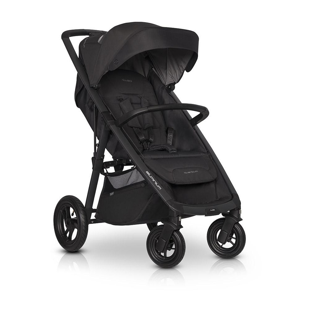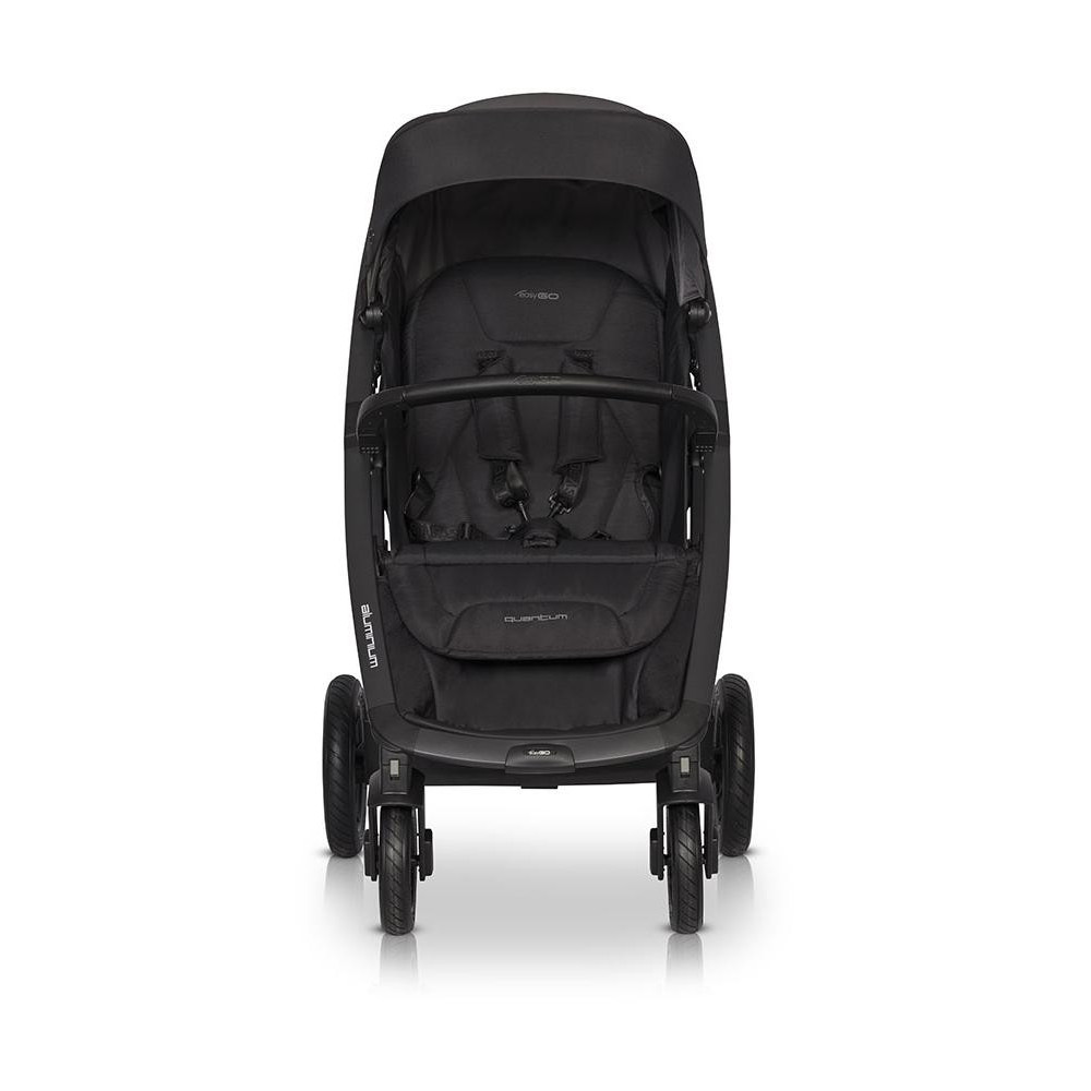 Wózek dziecięcy EasyGo Quantum Basalt QUANTUM to najnowsza wersja znanego i cenionego wózka spacerowego marki EasyGo z kolekcji 2021. Nowy QUANTUM posiada wzmocnioną konstrukcję, tak aby wystarczył już do końca „wózkowania”. Siedzisko przeznaczone jest dla dzieci do 22 kg. Dodatkowo można obciążyć kosz na zakupy do 3 kg oraz torbę zawieszaną na rączce wózka do 1,5 kg (torba do zakupienia osobno), czyli całkowite maksymalne obciążenie wynosi aż 26,5 kg! Dzięki pompowanym łożyskowanym kołom oraz dobrej amortyzacji zarówno przedniego jak i tylnego zawieszenia QUANTUM stanowi świetny wózek spacerowy nawet na trudne nawierzchnie. Jest to również jeden z najstabilniejszych wózków na rynku dzięki szerokiemu rozstawowi kół. Siedzisko wózka QUANTUM ma szerokość 40 cm, dzięki czemu bez problemu pomieści nawet trzyletnie dziecko w zimowym kombinezonie. Jeśli Twoje dziecko właśnie przesiada się ze spacerówki będącej częścią zestawu 2w1, to QUANTUM będzie idealnym wyborem ponieważ z pewnością pomieści Twoje dziecko do końca „wózkowania”. Mimo swoich gabarytów i stabilności QUANTUM jest bardzo zgrabnym wózkiem, który złożysz jedną ręką do kompaktowych rozmiarów. Przenoszenie złożonego wózka ułatwi automatyczna blokada. Tapicerka wózka spacerowego QUANTUM została zaprojektowana w nowoczesnym sportowym stylu w modnych gładkich intensywnych kolorach. Logotypy wykonane zostały w technologii 3D. Modne logowane taśmy i wodoszczelne suwaki podkreślają sportowy charakter wózka. Jednak wygląd to nie wszystko. Tapicerka jest również niezwykle funkcjonalna. Budka przeciwsłoneczna posiada rozpinaną dodatkową sekcję za bocznymi panelami wentylacyjnymi. W tylnej części wózka ukryta jest kieszonka zapinana suwakiem wodoszczelnym. Koszyk na zakupy został wyposażony w boczne suwaki, które ułatwiają dostęp, gdy oparcie rozłożone jest do pozycji leżącej. QUANTUM posiada 4-stopniową regulację oparcia, którą obsłużysz bez wysiłku jedną ręką. Podnóżek regulowany jest w dwóch pozycjach (do siedzenia i do spania). Dodatkowo wózek posiada praktyczny stopień na nóżki dla większego dziecka. Bogate wyposażenie standardowe obejmuje dedykowaną folię przeciwdeszczową z wywietrznikami oraz ocieplacz na nóżki. SPECYFIKACJA TECHNICZNA: WYMIARY (cm): Rozłożony z kołami: 87 x 59 x 104 Złożony z kołami: 34 x 59 x 75 Złożony bez kół: 32 x 59 x 48 Szerokość siedziska: 40 Wysokość oparcia: 45 Głębokość siedziska: 22 Długość podnóżka: 17 Średnica kół tylnych: 25 Średnica kół przednich: 17 WAGA (kg): 10,50 CHARAKTERYSTYKA: – duże pompowane koła – lekka aluminiowa rama wykonana z płaskich profili aluminiowych – budka przeciwsłoneczna wykonana z tkaniny z filtrem UV 50+ – innowacyjny system składania (obsługiwany jedną ręką) – wyjątkowo szerokie siedzisko (40 cm) – 4-stopniowa regulacja oparcia obsługiwana jedną ręką (łącznie z pozycją leżącą) – 2-stopniowa regulacja podnóżka – regulowana budka przeciwsłoneczna z daszkiem i dodatkową sekcją pozwalającą na większe pochylenie – okienko i wentylator w budce – praktyczna kieszeń w tylnej części budki – duży kosz na zakupy – ciepły pokrowiec na nóżki – centralny hamulec – automatyczna blokada na czas przenoszenia wózka – pełna folia przeciwdeszczowa (zasłania całą tapicerkę wózka) – barierka bezpieczeństwa i prowadnica obszyte modna skórą ekologiczną – 5-punktowe basy bezpieczeństwa – obrotowe przednie koła z możliwością blokady do jazdy prosto – produkt wyprodukowany zgodnie z europejską normą bezpieczeństwa EN 1888-1:2018 i EN 1888-2:2018