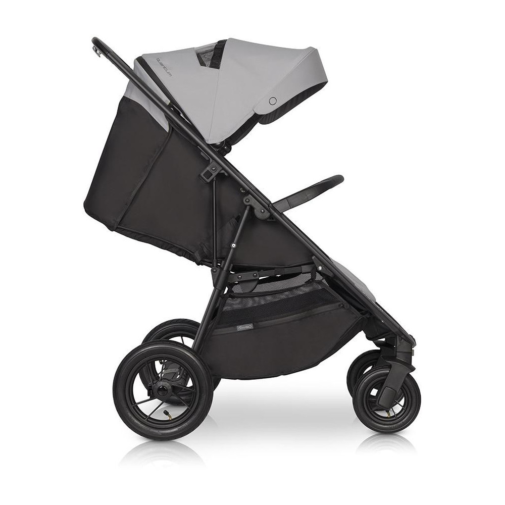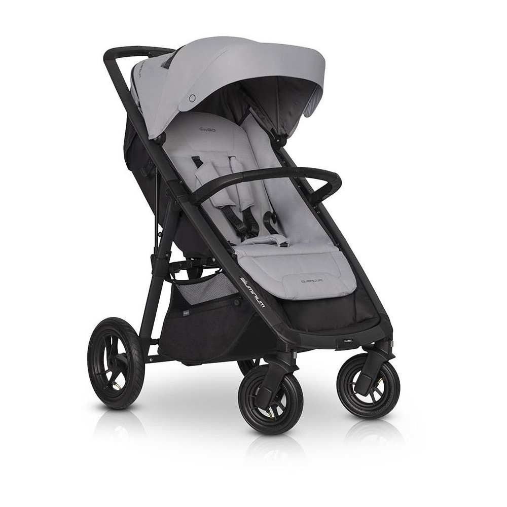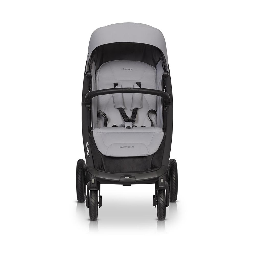 Wózek dziecięcy EasyGo Quantum Pearl QUANTUM to najnowsza wersja znanego i cenionego wózka spacerowego marki EasyGo z kolekcji 2021. Nowy QUANTUM posiada wzmocnioną konstrukcję, tak aby wystarczył już do końca „wózkowania”. Siedzisko przeznaczone jest dla dzieci do 22 kg. Dodatkowo można obciążyć kosz na zakupy do 3 kg oraz torbę zawieszaną na rączce wózka do 1,5 kg (torba do zakupienia osobno), czyli całkowite maksymalne obciążenie wynosi aż 26,5 kg! Dzięki pompowanym łożyskowanym kołom oraz dobrej amortyzacji zarówno przedniego jak i tylnego zawieszenia QUANTUM stanowi świetny wózek spacerowy nawet na trudne nawierzchnie. Jest to również jeden z najstabilniejszych wózków na rynku dzięki szerokiemu rozstawowi kół. Siedzisko wózka QUANTUM ma szerokość 40 cm, dzięki czemu bez problemu pomieści nawet trzyletnie dziecko w zimowym kombinezonie. Jeśli Twoje dziecko właśnie przesiada się ze spacerówki będącej częścią zestawu 2w1, to QUANTUM będzie idealnym wyborem ponieważ z pewnością pomieści Twoje dziecko do końca „wózkowania”. Mimo swoich gabarytów i stabilności QUANTUM jest bardzo zgrabnym wózkiem, który złożysz jedną ręką do kompaktowych rozmiarów. Przenoszenie złożonego wózka ułatwi automatyczna blokada. Tapicerka wózka spacerowego QUANTUM została zaprojektowana w nowoczesnym sportowym stylu w modnych gładkich intensywnych kolorach. Logotypy wykonane zostały w technologii 3D. Modne logowane taśmy i wodoszczelne suwaki podkreślają sportowy charakter wózka. Jednak wygląd to nie wszystko. Tapicerka jest również niezwykle funkcjonalna. Budka przeciwsłoneczna posiada rozpinaną dodatkową sekcję za bocznymi panelami wentylacyjnymi. W tylnej części wózka ukryta jest kieszonka zapinana suwakiem wodoszczelnym. Koszyk na zakupy został wyposażony w boczne suwaki, które ułatwiają dostęp, gdy oparcie rozłożone jest do pozycji leżącej. QUANTUM posiada 4-stopniową regulację oparcia, którą obsłużysz bez wysiłku jedną ręką. Podnóżek regulowany jest w dwóch pozycjach (do siedzenia i do spania). Dodatkowo wózek posiada praktyczny stopień na nóżki dla większego dziecka. Bogate wyposażenie standardowe obejmuje dedykowaną folię przeciwdeszczową z wywietrznikami oraz ocieplacz na nóżki. SPECYFIKACJA TECHNICZNA: WYMIARY (cm): Rozłożony z kołami: 87 x 59 x 104 Złożony z kołami: 34 x 59 x 75 Złożony bez kół: 32 x 59 x 48 Szerokość siedziska: 40 Wysokość oparcia: 45 Głębokość siedziska: 22 Długość podnóżka: 17 Średnica kół tylnych: 25 Średnica kół przednich: 17 WAGA (kg): 10,50 CHARAKTERYSTYKA: – duże pompowane koła – lekka aluminiowa rama wykonana z płaskich profili aluminiowych – budka przeciwsłoneczna wykonana z tkaniny z filtrem UV 50+ – innowacyjny system składania (obsługiwany jedną ręką) – wyjątkowo szerokie siedzisko (40 cm) – 4-stopniowa regulacja oparcia obsługiwana jedną ręką (łącznie z pozycją leżącą) – 2-stopniowa regulacja podnóżka – regulowana budka przeciwsłoneczna z daszkiem i dodatkową sekcją pozwalającą na większe pochylenie – okienko i wentylator w budce – praktyczna kieszeń w tylnej części budki – duży kosz na zakupy – ciepły pokrowiec na nóżki – centralny hamulec – automatyczna blokada na czas przenoszenia wózka – pełna folia przeciwdeszczowa (zasłania całą tapicerkę wózka) – barierka bezpieczeństwa i prowadnica obszyte modna skórą ekologiczną – 5-punktowe basy bezpieczeństwa – obrotowe przednie koła z możliwością blokady do jazdy prosto – produkt wyprodukowany zgodnie z europejską normą bezpieczeństwa EN 1888-1:2018 i EN 1888-2:2018