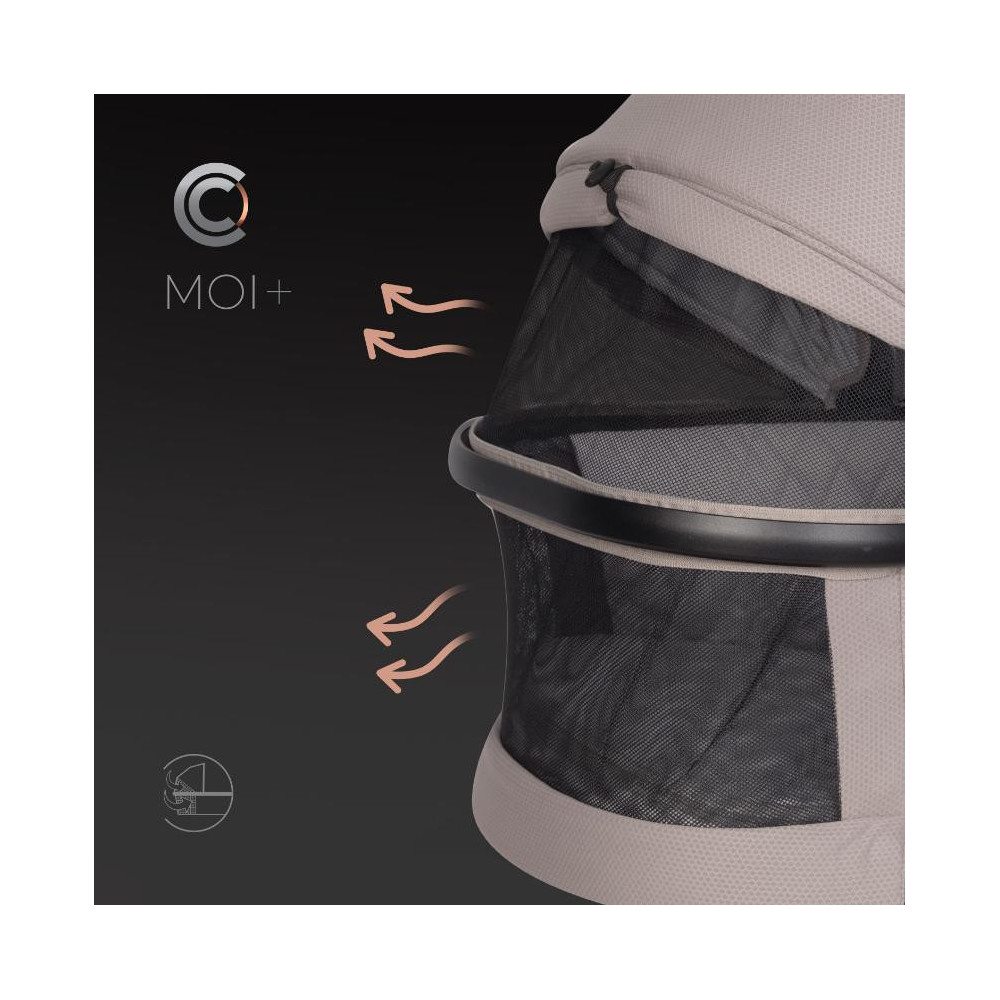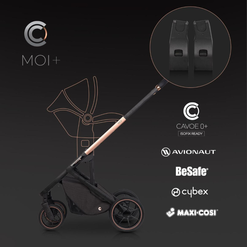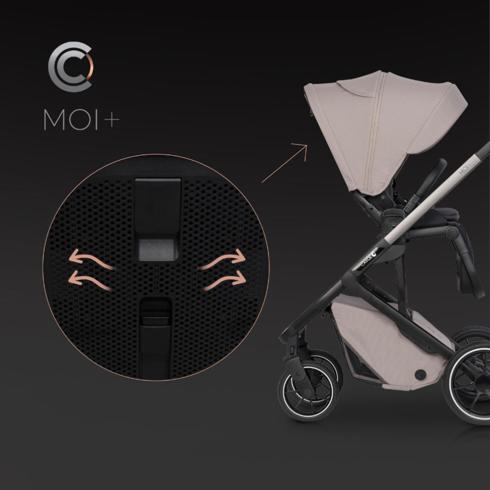 MOI by CAVOE je inovatívny kočík, ktorý kombinuje jedinečný štýl s všestrannou funkčnosťou. Disponuje inovatívnym teleskopickým systémom skladania, vďaka ktorému sa zloží do extrémne malých rozmerov bez ohľadu na to, či je sedadlo namontované dopredu alebo dozadu
